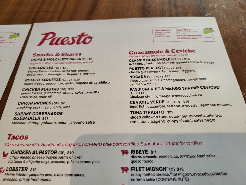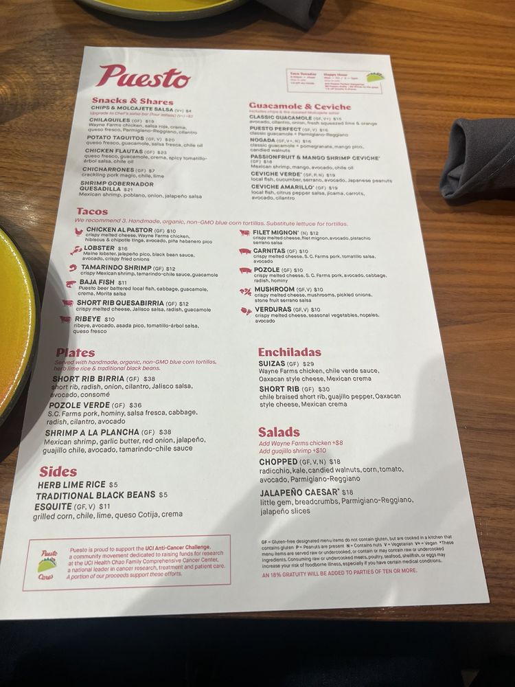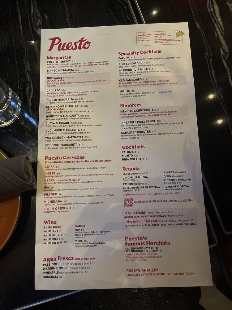 Puesto - Anaheim offers a trendy and upscale dining experience with a focus on Mexican cuisine. The menu features a variety of flavorful dishes, including steak tacos, pork, and chicken, all prepared to perfection. Customers rave about the delicious margaritas and signature cocktails served at the bar. With a spacious layout and stylish decor, the atmosphere is perfect for a relaxing meal with friends or family. The attentive and friendly service provided by the staff, particularly standout server Isabella, adds to the overall dining experience. Standout dishes include the short rib and carnitas tacos, potato taquitos, and fresh guacamole. While prices may be on the higher side, the quality of the food justifies the cost. Overall, Puesto - Anaheim is a must-visit for those seeking exceptional Mexican cuisine in a classy setting.
