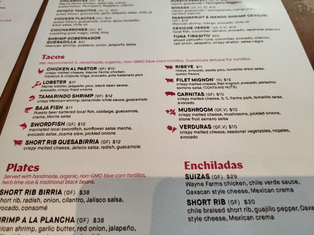 classic + Maine lobster, jalapeño pico, cilantro serrano crema, crispy onions & ancho chiles
